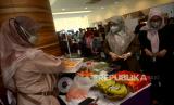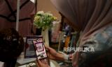 Seorang karyawan bertransaksi menggunakan QRIS Muamalat DIN dalam kegiatan bazar Ramadhan di Muamalat Tower, Jakarta, Kamis (16/3/2023). (FOTO : Republika/Prayogi.)