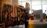 Peserta menata produk daganganya dalam kegiatan bazar Ramadhan di Muamalat Tower, Jakarta, Kamis (16/3/2023). (FOTO : Republika/Prayogi.)