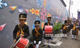 Warga menggunakan pakaian Gagrak Yogyakarta memeriahkan peluncuran Kampung Wisata Suryatmajan, Yogyakarta, Kamis (16/3/2023). (FOTO : Republika/Wihdan Hidayat)