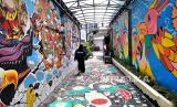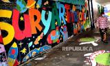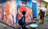 REPUBLIKA.CO.ID, YOGYAKARTA -- Pengunjung melihat lukisan mural di tembok rumah warga Kampung Wisata Suryatmajan, Yogyakarta, Kamis (16/3/2023).