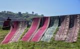 Sejumlah warga menjemur karpet masjid usai dicuci di Daerah Aliran Sungai (DAS) Ciwidey, Desa Sadu, Soreang, Kabupaten Bandung, Jawa Barat, Sabtu (18/3/2023). Gotong royong membersihkan karpet dan tikar masjid tersebut merupakan tradisi masyarakat yang diselenggarakan setiap sebulan menjelang bulan suci Ramadhan. (FOTO : ABDAN SYAKURA/REPUBLIKA)