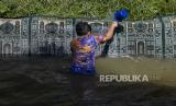 Seorang anak mencuci karpet masjid di Daerah Aliran Sungai (DAS) Ciwidey, Desa Sadu, Soreang, Kabupaten Bandung, Jawa Barat, Sabtu (18/3/2023). Gotong royong membersihkan karpet dan tikar masjid tersebut merupakan tradisi masyarakat yang diselenggarakan setiap sebulan menjelang bulan suci Ramadhan. (FOTO : ABDAN SYAKURA/REPUBLIKA)