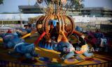 Salah satu wahana pada Krakatau Park di kawasan Bakauheni Harbour City, Lampung, Sabtu (18/3/2023). Progres pembangunan Krakatau Park yang merupakan wisata lokal untuk mendorong percepatan pembukaan lapangan pekerjaan serta pertumbuhan ekonomi daerah tersebut telah mencapai 80 persen dan ditargetkan rampung pada Mei 2023. (FOTO : Republika/Putra M. Akbar)