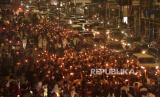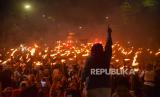 REPUBLIKA.CO.ID,MEDAN -- Warga mengikuti pawai obor di Medan, Sumatera Utara, Sabtu (18/3/2023).