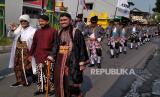 Warga menirukan Wali Songo saat mengikuti karnaval tarhib Ramadhan Masjid Al Ghofuur, Tamantirto, Bantul, Yogyakarta, Ahad (19/3/2023). Karnaval untuk menyambut Ramadhan ini mengusung tema menjalin ukhuwah berharap berkah. Warga antusias mengikuti karnaval keliling desa di sekitar masjid. (FOTO : Republika/Wihdan Hidayat)