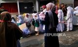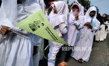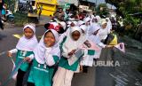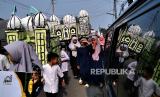 Anak-anak TPQ mengikuti karnaval tarhib Ramadhan Masjid Al Ghofuur di Tamantirto, Bantul, Yogyakarta, Ahad (19/3/2023). Karnaval untuk menyambut Ramadhan ini mengusung tema menjalin ukhuwah berharap berkah. Warga antusias mengikuti karnaval keliling desa di sekitar masjid. (FOTO : Republika/Wihdan Hidayat)