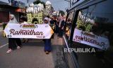 Anak-anak TPA ikut memeriahkan karnaval tarhib Ramadhan Masjid Al Ghofuur, Tamantirto, Bantul, Yogyakarta, Ahad (19/3/2023). Karnaval untuk menyambut Ramadhan ini mengusung tema menjalin ukhuwah berharap berkah. Warga antusias mengikuti karnaval keliling desa di sekitar masjid. (FOTO : Republika/Wihdan Hidayat)