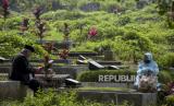 Warga berdoa di makam keluarganya di Tempat Pemakaman Umum (TPU) Cikadut, Mandalajati, Kota Bandung, Jawa Barat, Senin (20/3/2023). Menjelang bulan suci Ramadhan, TPU Covid-19 Cikadut ramai dikunjungi peziarah yang datang untuk mendoakan keluarga serta kerabat yang telah wafat. (FOTO : ABDAN SYAKURA/REPUBLIKA)