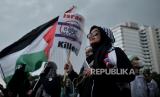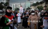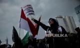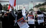 Massa dari Persaudaraan Alumni (PA) 212 menggelar aksi di kawasan Patung Kuda, Jakarta, Senin (20/3/2023). (FOTO : Republika/Thoudy Badai)