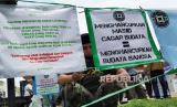 REPUBLIKA.CO.ID, BANDUNG -- Sejumlah massa menggelar Aksi Bela Masjid Cagar Budaya di depan gerai Indomart Jalan Cihampelas, Kota Bandung, Selasa (21/3/2023).
