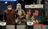 Kepala Badan Pertanahan Nasional (BPN) Jakarta Timur Sudarman Harjasaputra bersama istrinya Vidya Piscarista usai menjalani pemeriksaan di Gedung Merah Putih KPK, Jakarta, Selasa (21/3/2023). (FOTO : Republika/Thoudy Badai)