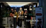 Istri Kepala Badan Pertanahan Nasional (BPN) Jakarta Timur Sudarman Harjasaputra, Vidya Piscarista usai menjalani pemeriksaan di Gedung Merah Putih KPK, Jakarta, Selasa (21/3/2023). (FOTO : Republika/Thoudy Badai)