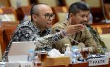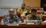 Kepala Pusat Pelaporan dan Analisis Transaksi Keuangan (PPATK) Ivan Yustiavandana (kiri) mengikuti rapat kerja dengan Komisi III DPR di kompleks Parlemen, Senayan, Jakarta, Selasa (21/3/2023). (FOTO : Republika/Prayogi.)