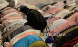 Sejumlah umat Islam melaksanakan shalat tarawih pertama di Masjid At Thohir, Depok, Jawa Barat, Rabu (22/3/2023). Masjid At Thohir mulai menyelenggarakan shalat tarawih selama bulan puasa pasca pemerintah menetapkan 1 Ramadhan 1444 Hijriyah yang jatuh pada 23 Maret 2023. (FOTO : Republika/Putra M. Akbar)