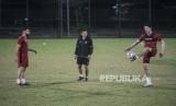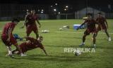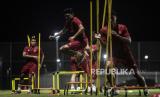 REPUBLIKA.CO.ID, JAKARTA -- Pemain Timnas Indonesia mengikuti latihan di lapangan latih Jakarta International Stadium (JIS), Jakarta, Kamis (23/3/2023).