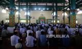 Sejumlah jamaah mendengarkan khutbah saat shalat Jumat pertama Ramadhan di Masjid Kesultanan Ternate, Kota Ternate, Maluku Utara, Jumat (24/3/2023). Masjid Kesultanan Ternate yang dibagun yang dibangun sekitar tahun 1606 di masa kekuasaan Sultan Saidi Barakati masih mempertahankan tradisi dan keunikannya saat melaksanakan shalat Jumat yang tidak dimiliki masjid-masjid lain di Kota Ternate. (FOTO : Antara/Andri Saputra)