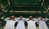 Empat Muadzin mengumandangkan adzan saat shalat Jumat pertama Ramadhan di Masjid Kesultanan Ternate, Kota Ternate, Maluku Utara, Jumat (24/3/2023). Masjid Kesultanan Ternate yang dibangun yang dibagun sekitar tahun 1606 di masa kekuasaan Sultan Saidi Barakati masih mempertahankan tradisi dan keunikannya saat melaksanakan shalat Jumat yang tidak dimiliki masjid-masjid lain di Kota Ternate. (FOTO : Antara/Andri Saputra)