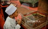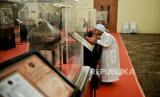 Pengunjung mengamati artefak rambut Rasulullah SAW di Masjid At-Tin, Jakarta, Sabtu (25/3/2023). (FOTO : Republika/Thoudy Badai)