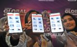Konsumen memperlihatkan platform belanja daring JomBingo saat peluncuran fitur Jombingo Mall di Jakarta, Ahad (26/3/2023). (FOTO : Tahta Aidilla/Republika)