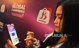 Konsumen memperlihatkan platform belanja daring JomBingo saat peluncuran fitur Jombingo Mall di Jakarta, Ahad (26/3/2023).  (FOTO : Tahta Aidilla/Republika)
