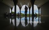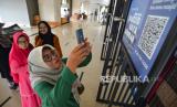 REPUBLIKA.CO.ID, PADANG -- Pengunjung memindai QR code untuk mengisi buku tamu di Masjid Raya Sumatra Barat di Padang, Senin (27/3/2023).