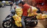 Warga mengangkut buah Timun Suri yang telah dibeli di Pasar Induk Kramat Jati, Jakarta, Senin (27/3/2023). (FOTO : Republika/Putra M. Akbar)