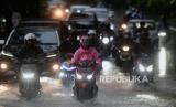 Sejumlah pengendara melintas saat hujan deras di Jalan Kolonel Sugiono, Duren Sawit, Jakarta, Senin (27/3/2023). Badan Meteorologi Klimatologi dan Geofisika memprakirakan hujan masih berpotensi terjadi hingga awal April 2023 mendatang yang disebabkan dinamika atmosfer masih mengalami peralihan dari musim penghujan menuju musim kemarau. (FOTO : Republika/Putra M. Akbar)