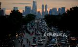 Sejumlah kendaraan terjebak kemacetan pasca hujan di Jalan KH Abdullah Syafei, Tebet, Jakarta, Senin (27/3/2023). Badan Meteorologi Klimatologi dan Geofisika memprakirakan hujan masih berpotensi terjadi hingga awal April 2023 mendatang yang disebabkan dinamika atmosfer masih mengalami peralihan dari musim penghujan menuju musim kemarau. (FOTO : Republika/Putra M. Akbar)