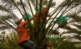 REPUBLIKA.CO.ID,KARO -- Pekerja memanen buah kurma di Desa Kutambaru, Tiganderket, Karo, Sumatera Utara, Senin (27/3/2023).
