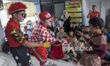 Anggota Badut Nyentrik Cimahi Bandung Sauyunan (Necis) menghibur siswa penyandang disabilitas saat Safari Ramadhan di SLB BC Bina Widya, Batujajar, Kabupaten Bandung Barat, Jawa Barat, Selasa (28/3/2023). (FOTO : ABDAN SYAKURA/REPUBLIKA)
