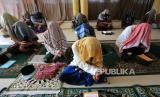 REPUBLIKA.CO.ID,Jamaah suluk menutupi kepalanya dengan selendang dan surban saat mengikuti zikir di dalam masjid Bustanul Arifin komplek Dayah Serambi Mekkah, Meulaboh, Aceh Barat, Aceh, Selasa (28/3/2023).