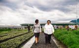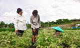 Menteri Lingkungan Hidup dan Kehutanan RI Siti Nurbaya , Menteri Lingkungan Hidup, Pembangunan Berkelanjutan Republik Kongo, Arlette Soudan-Nonault (dar kiri) berbincang saat mengunjungi di Pusat Persemaian Modern (Nursery Center) Rumpin, Bogor. Senin (27/3/2023). (FOTO : Dok.Republika)