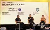 Presiden Direktur Maybank Indonesia Taswin Zakaria (tengah) didampingi Sekjen PB PASI Tigor Tanjung (kanan), dan Race Director Maybank Marathon 2023 Widya Permana (kiri) berbicara dalam konferensi pers Maybank Marathon 2023 di Jakarta, Rabu (29/3/2023). Maybank Indonesia mengumumkan penyelenggaraan ajang World Athletics? Elite Label Road Race Maybank Marathon 2023 yang akan dilaksanakan di Bali Safari & Marine Park Gianyar pada 27 Agustus 2023 dengan memperlombakan kategori marathon (42,195 km), half-marathon (21,1 km) dan 10K, serta Children Sprint dengan total hadiah lebih dari Rp2,7 miliar. ANTARA (FOTO : Dok Republika)