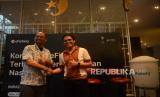CEO eFishery Gibran Huzaifah (kanan) berjabat tangan dengan Wakil Kepala Lembaga Demografi Fakultas Ekonomi dan Bisnis Universitas Indonesia (LD FEB UI) Paksi C.K.Walandouw (kiri) sebelum memberikan keterangan terkait kontribusi eFishery terhadap Perekonomian Nasional di Jakarta, Rabu (29/3/2023). eFishery yang merupakan perusahaan Aquaculture Intelligence yang mengembangkan inovasi di bidang akuakultur menggandeng LD FEB UI melalui sebuah riset yang memaparkan beberapa temuan penting atas peranan eFishery mulai dari peningkatan pendapatan usaha dan keuntungan para petani melalui produk dan layanan digital hingga peningkatan hasil budidaya panen melalui pengaplikasian teknologi yang lebih efektif dan efisien dalam sektor akuakultur di Indonesia. (FOTO : Republika/Prayogi.)