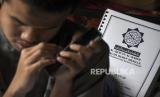 Santri mendengarkan Alquran melalui gawai di salah satu kamar di Pesantren Tahfidz Tuna Netra Mahad Saman Darushudur, Cimenyan, Kabupaten Bandung, Jawa Barat, Kamis (30/3/2023). (FOTO : ABDAN SYAKURA/REPUBLIKA)
