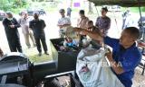Wali Kota Bandung Yana Mulyana menyaksikan mesin pencuci plastik saat meninjau alat pengolahan sampah dan limbah inovasi Kodam III/Siliwangi, di Jalan Raya Lembang, Kabupaten Bandung Barat, Kamis (30/3/2023). (FOTO : Edi Yusuf/Republika)