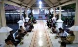 Jamaah menunggu waktu buka bersama dengan menu gulai kambing di Masjid Gedhe Kauman, Yogyakarta, Kamis (30/3/2023). Menu buka bersama setiap Kamis dengan menu gulai kambing merupakan tradisi di Masjid Gedhe Kauman. Sekitar seribu porsi gulai kambing disiapkan oleh masjid untuk jamaah. Awalnya menu spesial ini hanya pada Hari Kamis, tetapi sekarang bertambah pada Senin karena banyak donatur untuk gulai kambing. Tradisi ini awalnya dilakukan sejak Raja Sri Sultan Hamengku Buwono VIII yang memberikan sedekah gulai kambing untuk kaum dhuafa, dan dilestarikan hingga kini. (FOTO : Republika/Wihdan Hidayat)