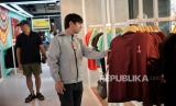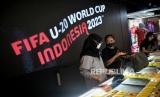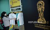 Pengunjung membeli merchandise Piala Dunia U-20 di gerai official licensed product World Cup U-20 Indonesia, Juaraga store di FX Sudirman, Jakarta, Kamis (30/3/2023). Perhelatan Piala Dunia U-20 batal digelar di Indonesia, setelah FIFA memutuskan membatalkan Indonesia sebagai tuan rumah FIFA U-20 World Cup 2023. (FOTO : Republika/Thoudy Badai)