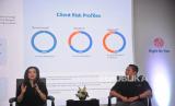 Head of Deposit & Wealth Management Vera Margaret (kiri) Wealth Advisory Head Diendy Liu (kanan) berbicara saat literasi Wealth Management di Jakarta, Kamis (30/3/2023). (FOTO : Tahta Aidilla/Republika)