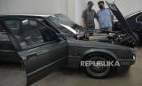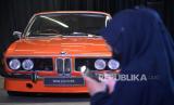 Pengunjung melihat mobil klasik BMW yang dipajang saat peresmian BMW Classic Partner : BMW Ultima di Serpong, Tangerang Selatan, Kamis (30/3/2023). BMW Classic Partner merupakan bengkel yang mendapat sertifikasi dari BMW Group Classic Global untuk restorasi dan perbaikan dengan menggunakan Suku Cadang Asli BMW untuk kendaraan BMW Classic dan menjadi yang pertama dan satu-satunya di Asia.  (FOTO : Republika/Edwin Dwi Putranto)