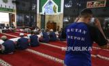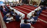 REPUBLIKA.CO.ID,DEPOK -- Sejumlah warga binaan pemasyarakatan (WBP) mengikuti khataman Al-Quran di Rutan Kelas 1 Depok, Cilodong, Depok, Jawa Barat, Jumat (31/3/2023).