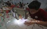 Pekerja mengerjakan pembuatan mukena di Pabrik Mukena Siti Khadijah, Limo, Depok, Jawa Barat, Jumat (31/3/2023). Menjelang Hari Raya Idul Fitri permintaan mukena dari berbagai daerah di Indonesia mengalami peningkatan pesanan yang cukup tinggi dalam satu hari mencapai 500 mukena hingga 1000 mukena sementara dalam kendisi normal hanya 300 mukena. (FOTO : Antara/Muhammad Iqbal )