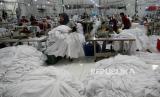 REPUBLIKA.CO.ID,DEPOK -- Pekerja mengerjakan pembuatan mukena di Pabrik Mukena Siti Khadijah, Limo, Depok, Jawa Barat, Jumat (31/3/2023).