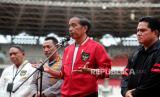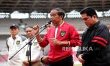 REPUBLIKA.CO.ID,JAKARTA — Presiden Joko Widodo meninjau latihan Timnas U-20 di Stadion Gelora Bung Karno, Senayan, Jakarta, Sabtu (1/4/2023).