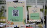 Papan QRIS yang bisa diunduh oleh pengunjung saat acara Khazanah Fest di Masjid At Thohir, Depok, Jawa Barat, Sabtu (1/4/2023). Masjid At Thohir menyelenggarakan kegiatan Ramadan bertajuk Khazanah Fest yang menyajikan kajian Islami, stan makanan, tempat berbuka puasa bersama dan UMKM yang berlangsung hingga 16 April 2023. (FOTO : Republika/Putra M. Akbar)