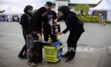 SPG menawarkan produk kepada pengunjung pada acara Khazanah Fest di Masjid At Thohir, Depok, Jawa Barat, Sabtu (1/4/2023). Masjid At Thohir menyelenggarakan kegiatan Ramadan bertajuk Khazanah Fest yang menyajikan kajian Islami, stan makanan, tempat berbuka puasa bersama dan UMKM yang berlangsung hingga 16 April 2023. (FOTO : Republika/Putra M. Akbar)