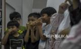 Peserta mengikuti permainan edukasi saat Pesantren Kilat Ngabuburit Ceria di Perpustakaan Masjid Pusdai, Kota Bandung, Jawa Barat, Sabtu (1/4/2023). Kegiatan tersebut untuk mengisi waktu bagi anak-anak jelang berbuka puasa dengan kegiatan membaca buku islami, mengaji, dakwah islam, permainan hingga sholat berjamaah. (FOTO : ABDAN SYAKURA/REPUBLIKA)