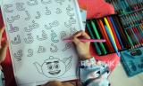 REPUBLIKA.CO.ID, DEPOK -- Anak mengikuti lomba mewarnai huruf Hijaiyah di Masjid Al-Mutaqin, Depok, Jawa Barat, Ahad (2/4/2023).