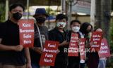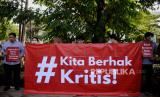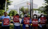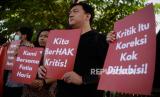 REPUBLIKA.CO.ID,JAKARTA -- Sejumlah massa aksi yang tergabung dalam Koalisi Masyarakat Sipil melakukan aksi di depan Pengadilan Negeri, Jakarta Timur, Senin (3/4/2023).