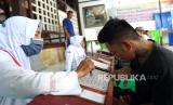 REPUBLIKA.CO.ID,GORONTALO -- Seorang warga binaan pemasyarakatan didampingi penyuluh agama belajar mengaji di pelataran Masjid At Taubah dalam Lembaga Pemasyarakatan (Lapas) Kelas IIA, UPT Kanwil Kemenkumham Gorontalo, Kota Gorontalo, Gorontalo, Senin (3/4/2023).
